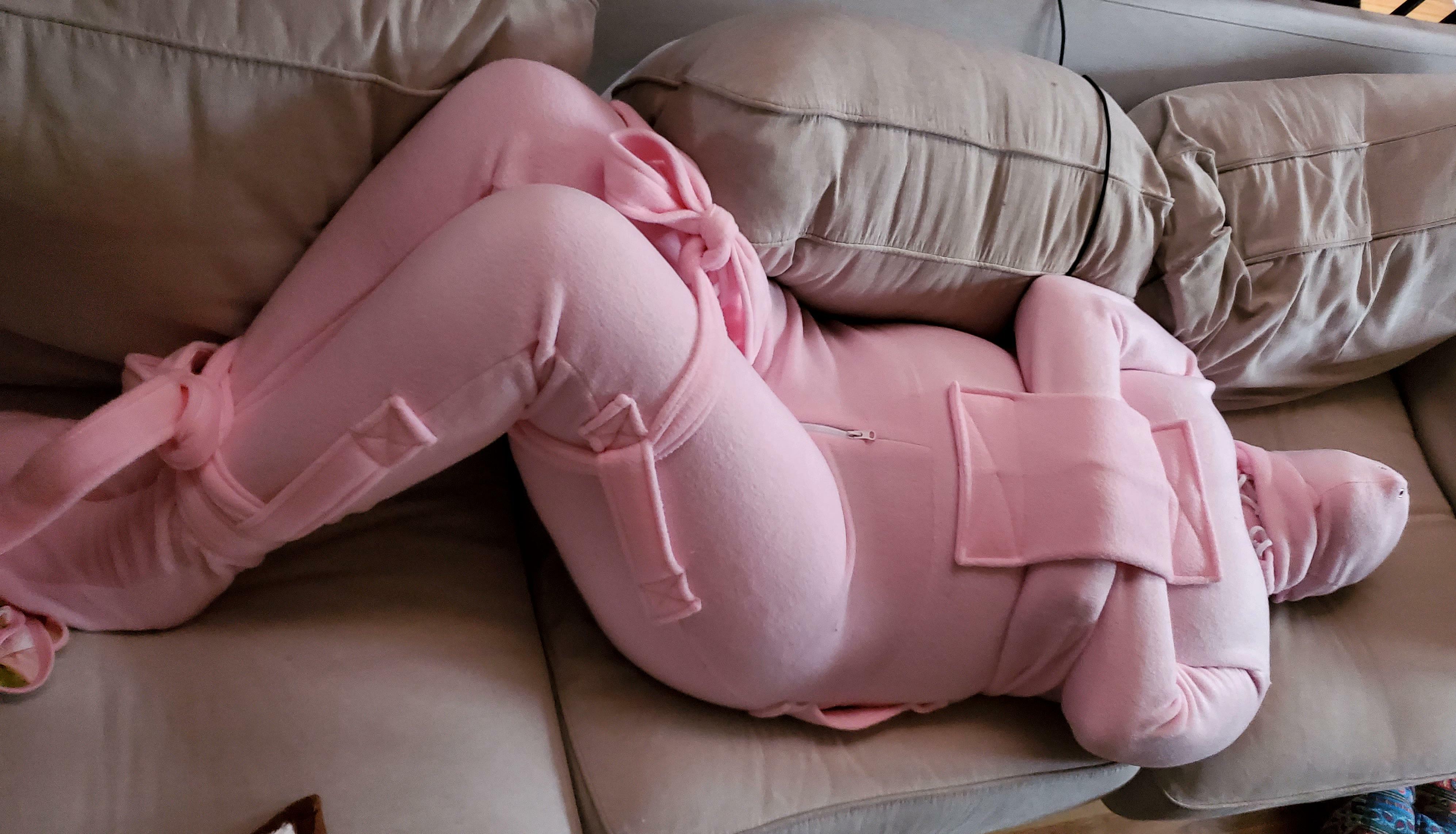 Gf bound and hooded in her onesie